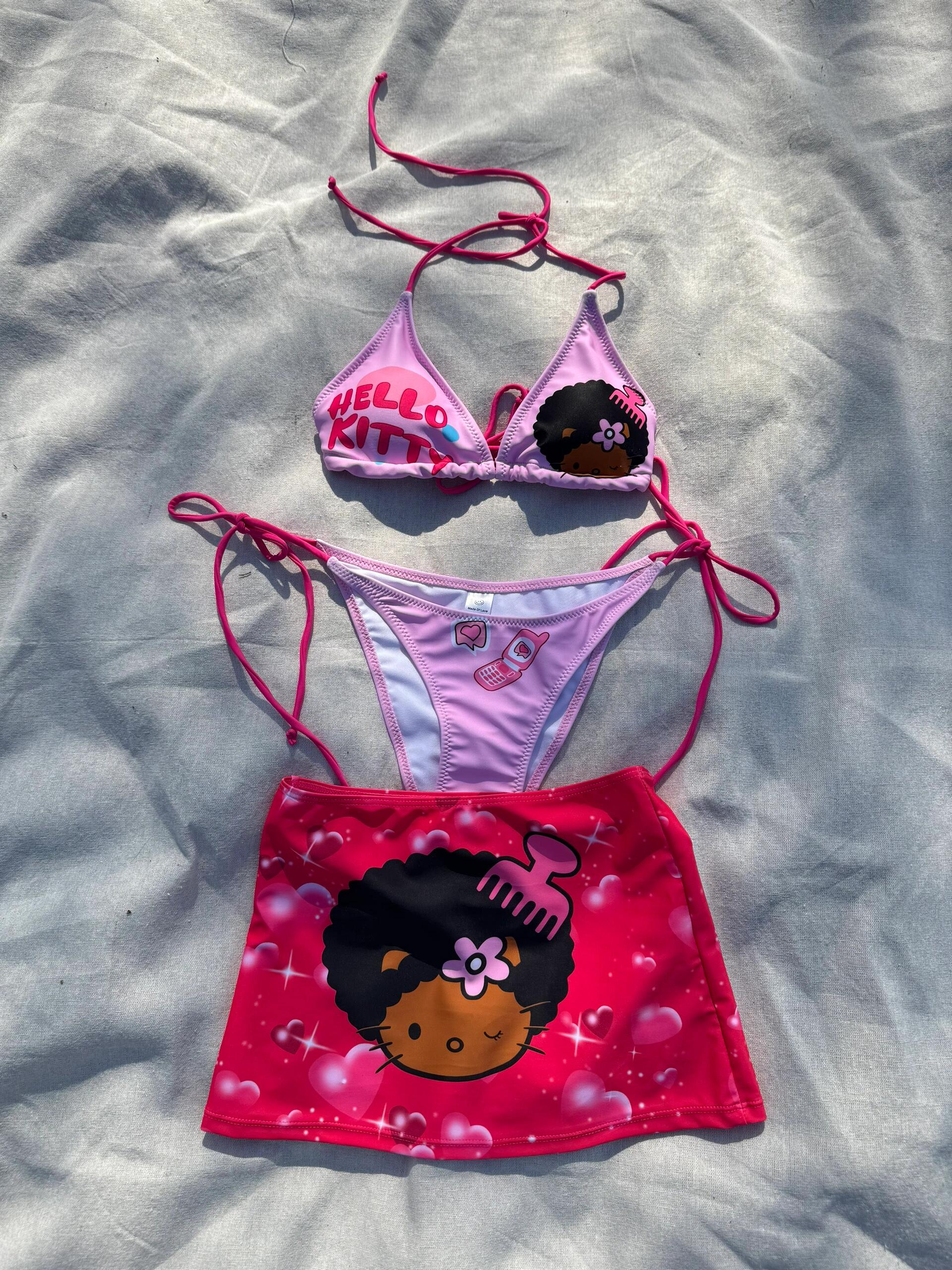 HK 3 Piece Bikini Sets - String Triangle Swimsuits with Cover Up Halter Sexy Bathing Suits