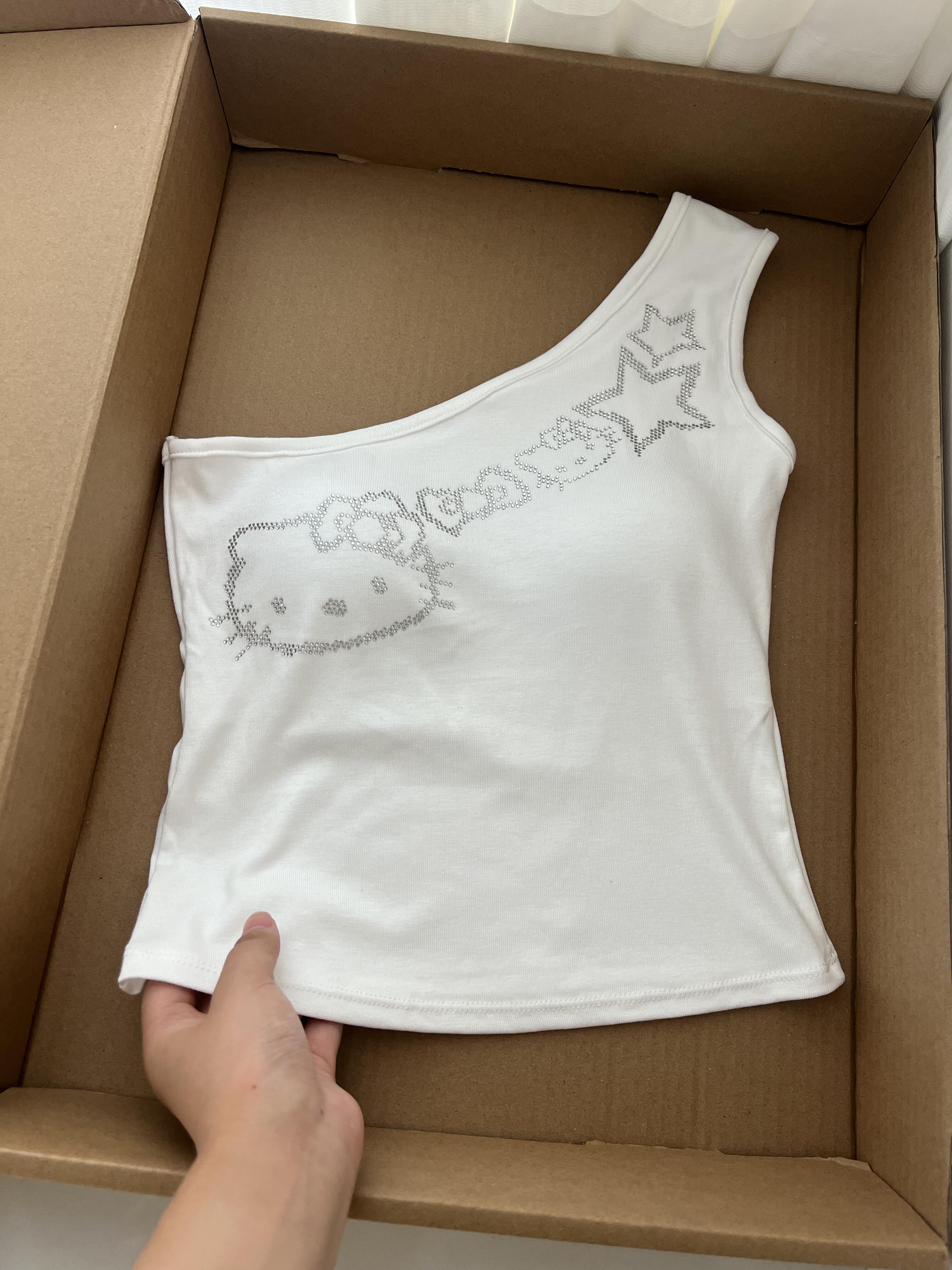 • Hellokitty One Shoulder Tank Tops Summer Going Out Tops Asymmetrical Sleeveless Shirts