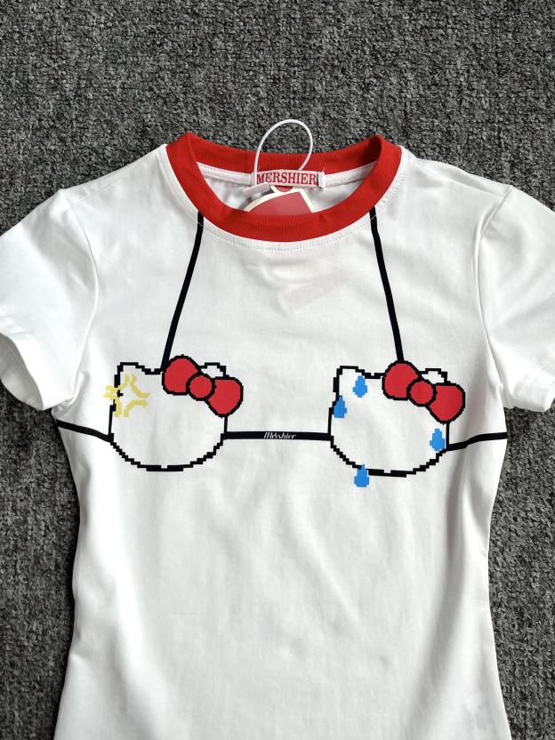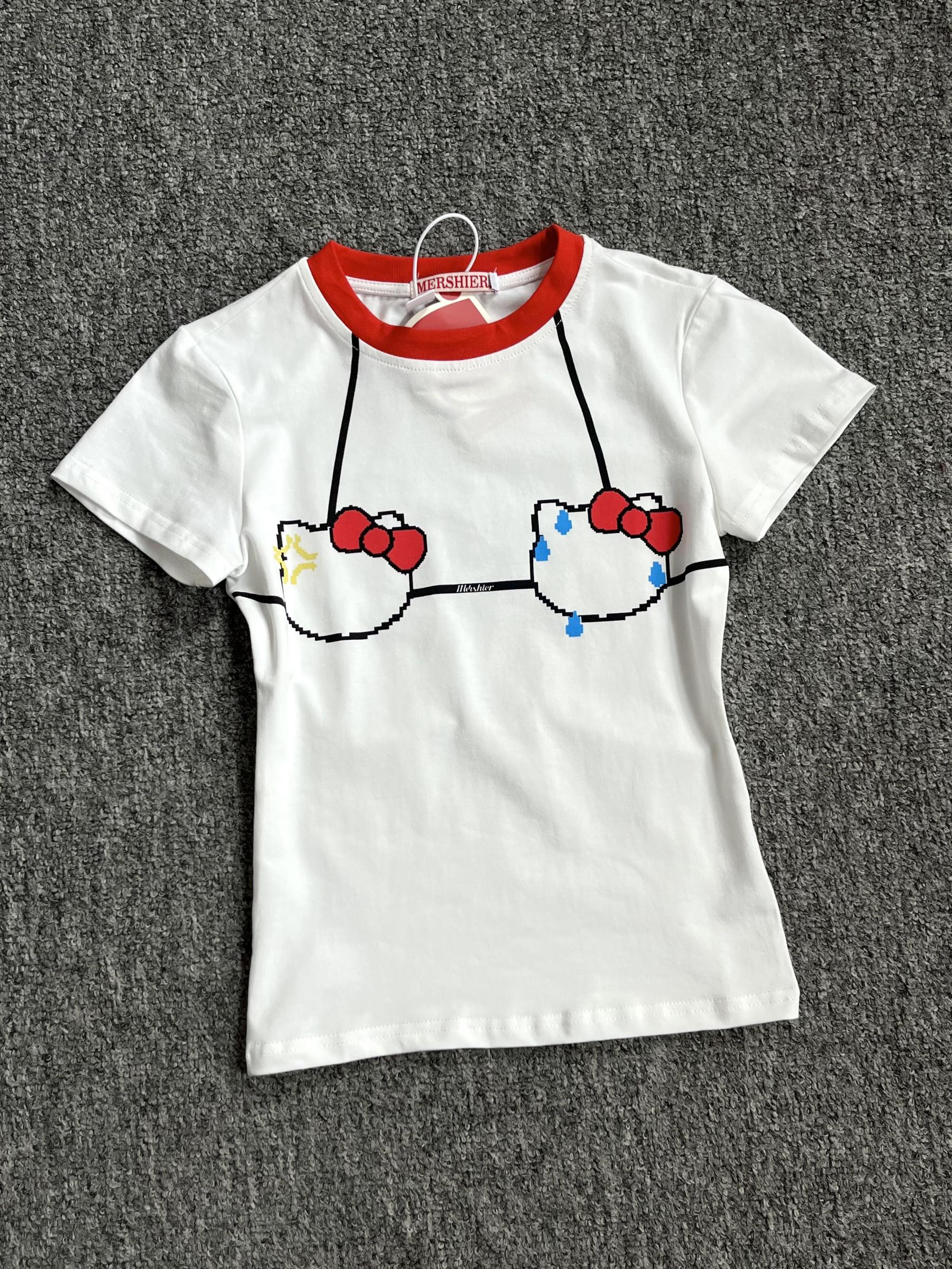 HK Bikini Print Y2k T Shirt Short Sleeve Tops