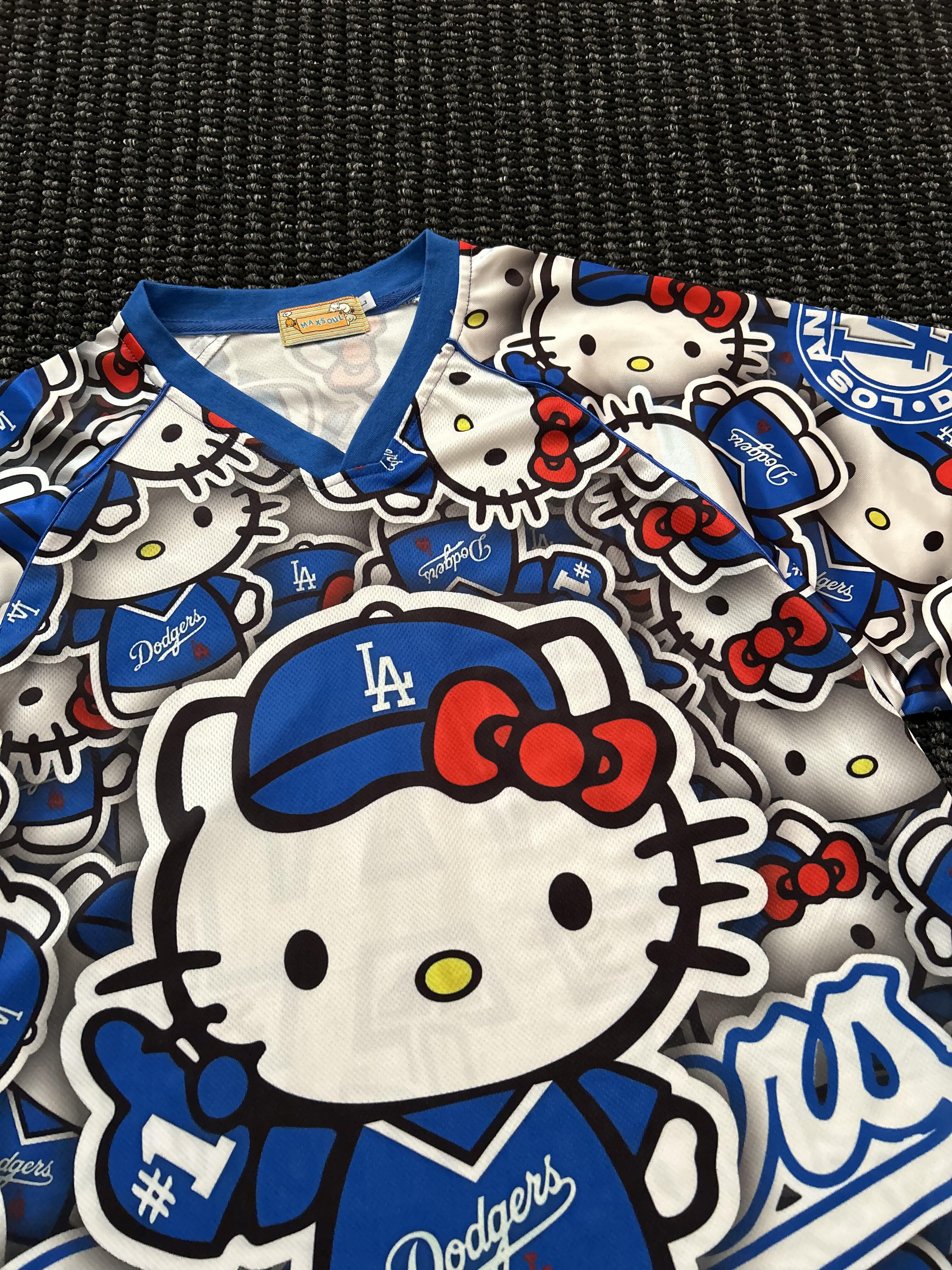 HK Blue Dodgers Cute Baseball Jersey Shirts Sports Uniform Summer Loose Short Sleeve Tops T-Shirts