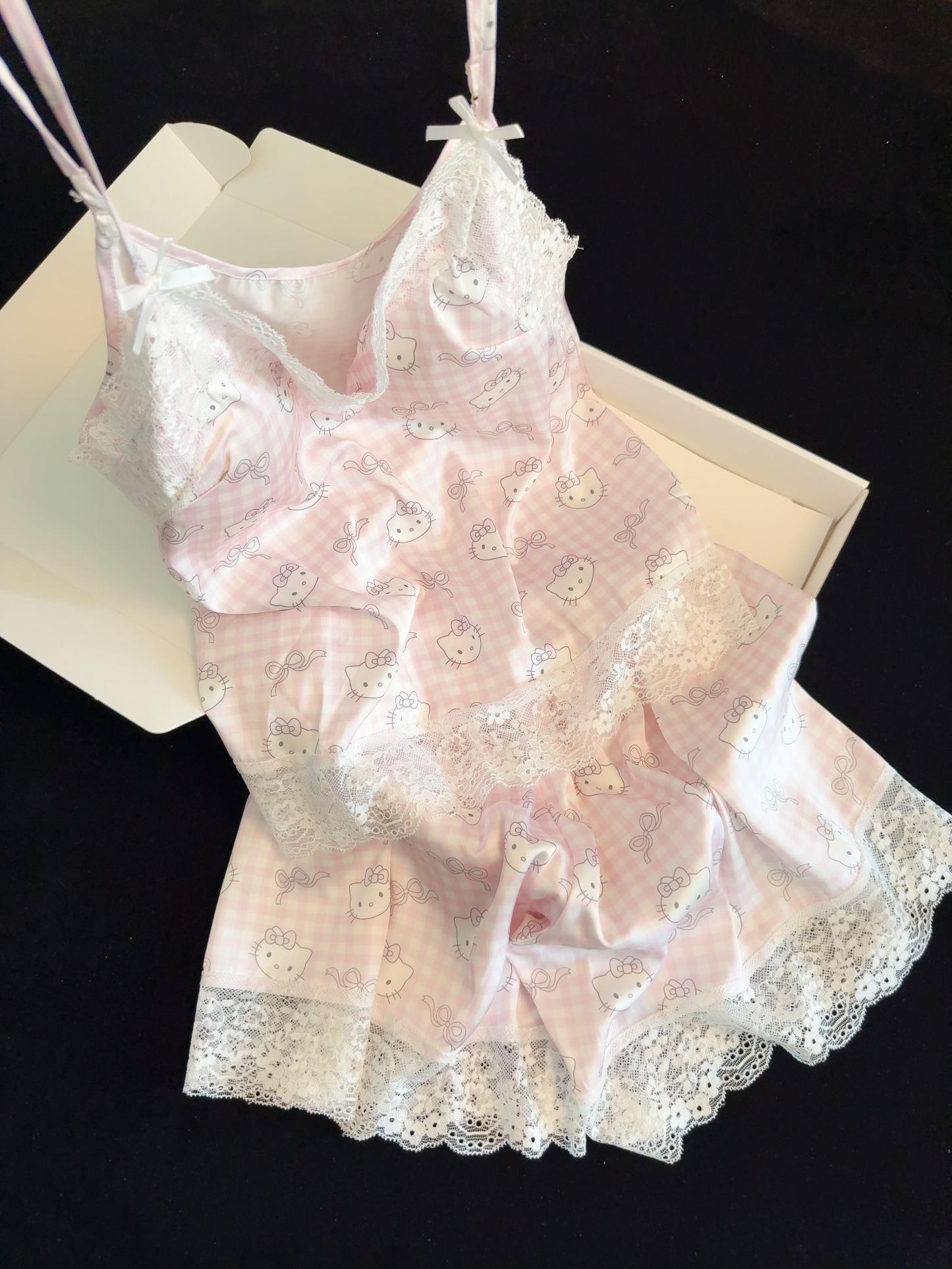 초기 화면 / ALL / HK Pink Lace Pajama Set for Women 2 Piece Lingerie Sleepwear Camisole Pj Shorts Set Soft Nightwear