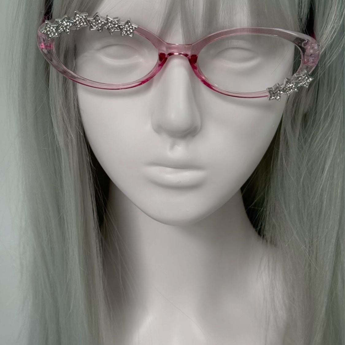 HK Retro Fashion Style Pink Narrow Cat Frame Clear Lens Eyeglasses