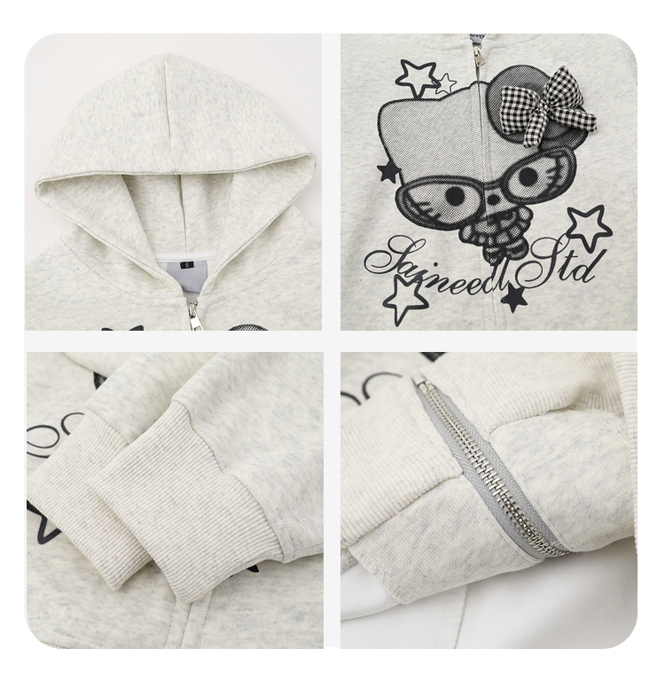 Perfect for layering over your favorite Y2K outfits, this zip-up hoodie adds a kawaii touch while keeping you comfy during chilly days.Whether you’re lounging, heading to class, or going out with friends, it’s the ideal mix of cute and casual.