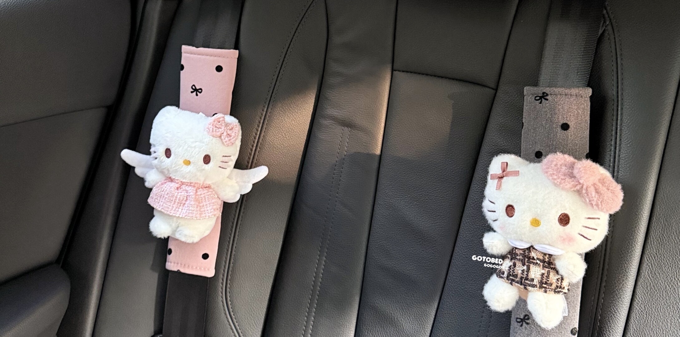 Drive in style and comfort with thisHello Kitty plush seat belt shoulder pad 🚗💕.