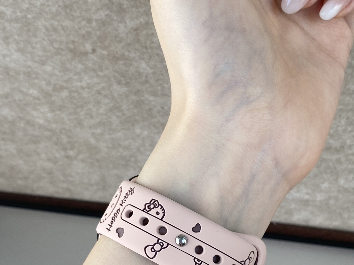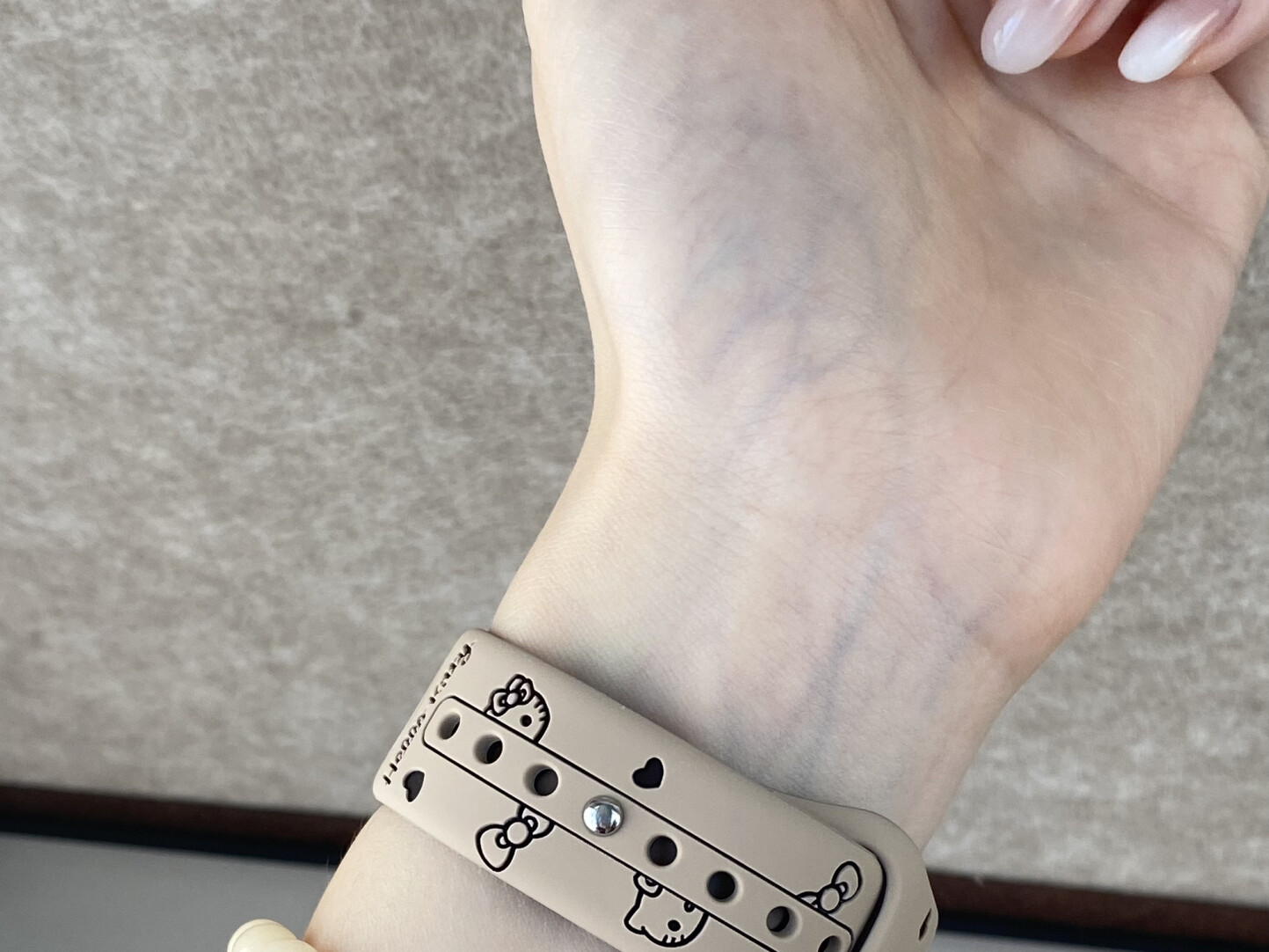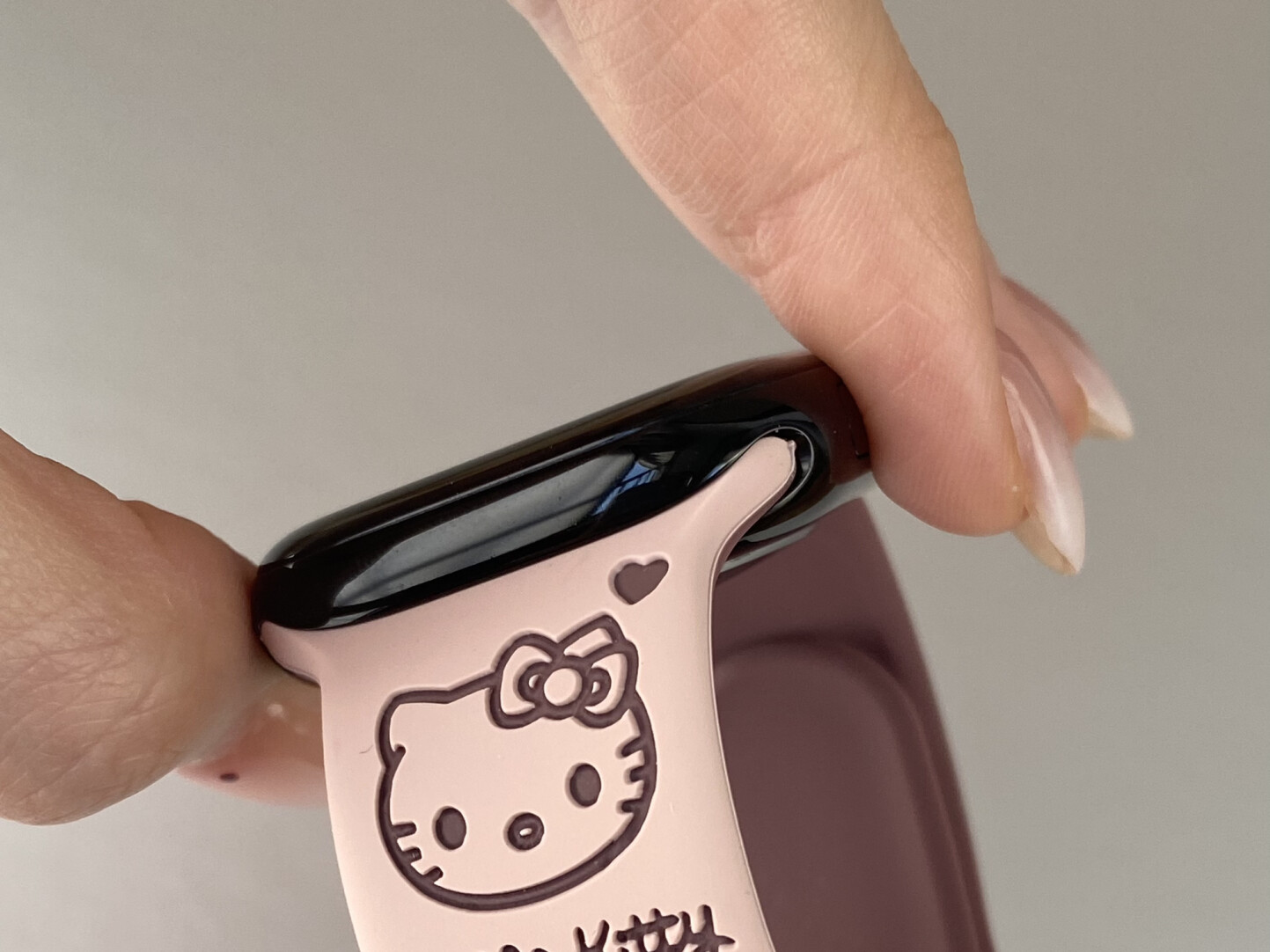 ⌚Kawaii Meets Everyday Function 🐱🎀 Make your Apple Watch stand out with thisHello Kitty engraved silicone band.Designed with a soft, skin-friendly texture and carved with adorable kitty details, this strap combines comfort and cuteness for daily wear.